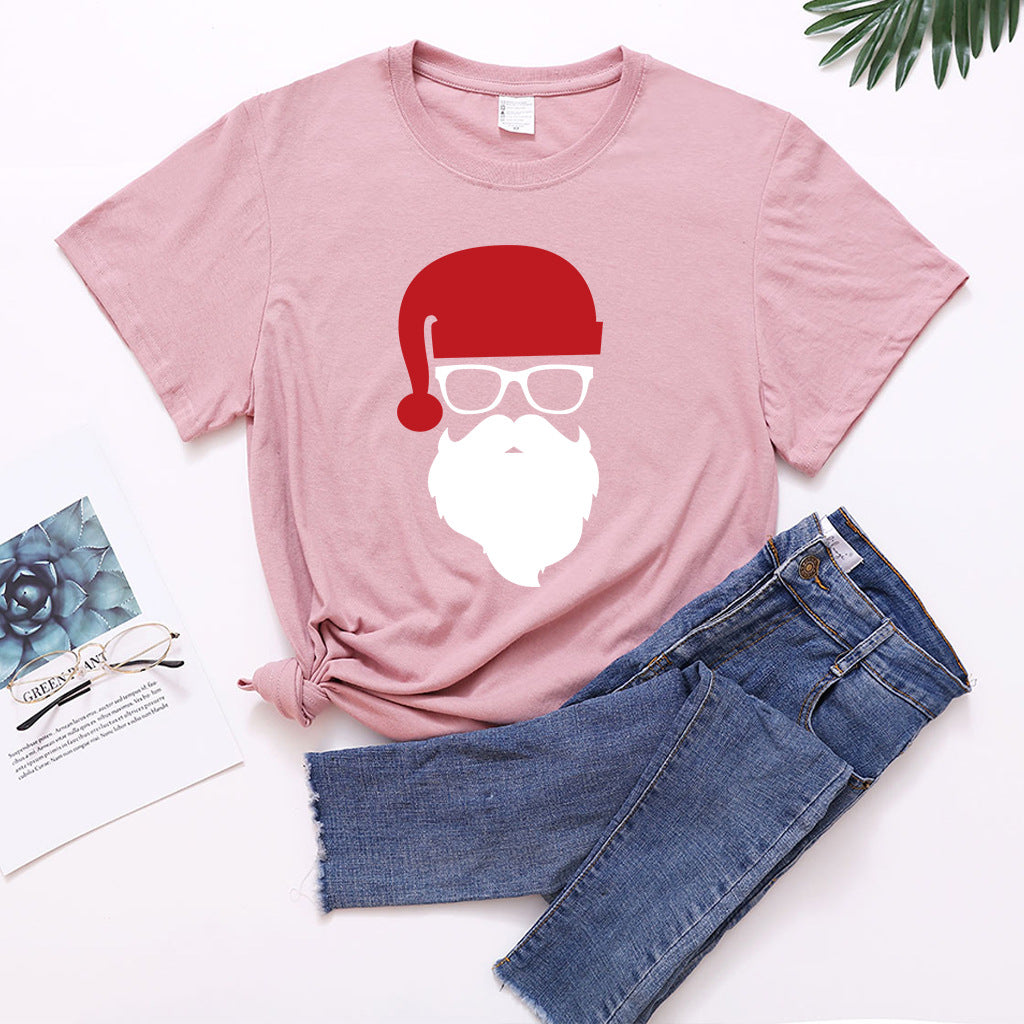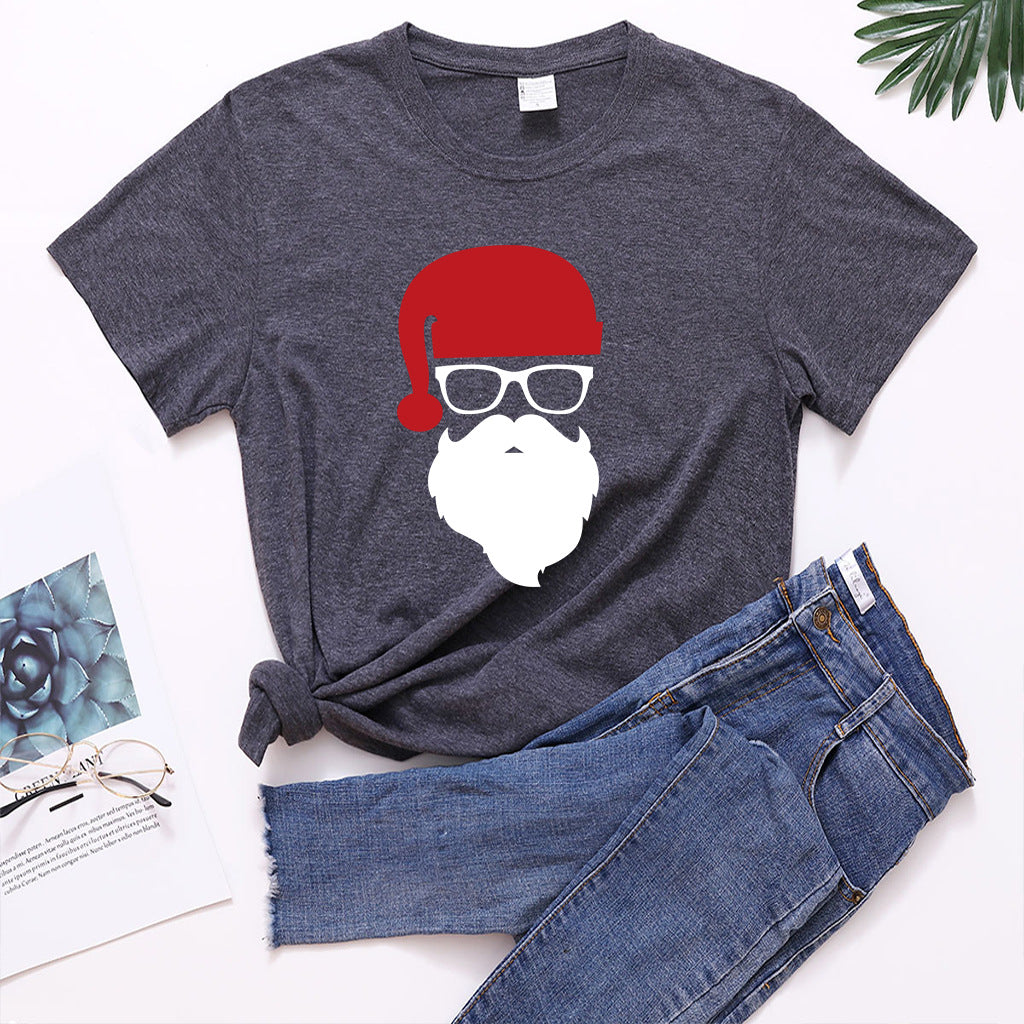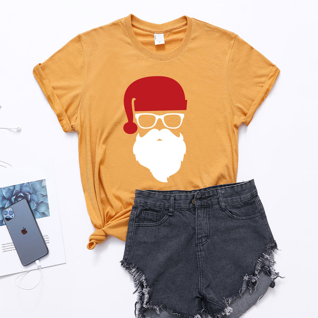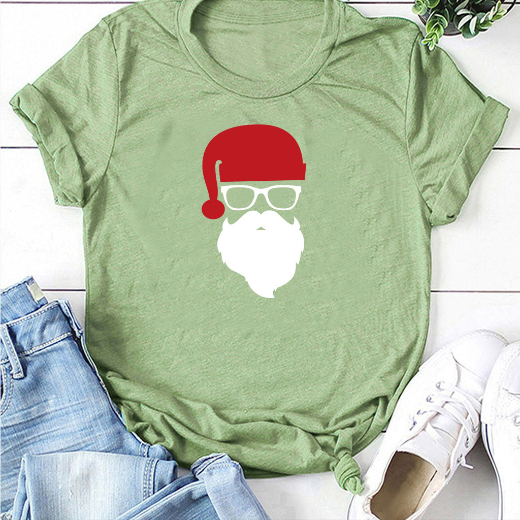 Christmas Glasses Christmas Old Man Head Printed T-shirt
