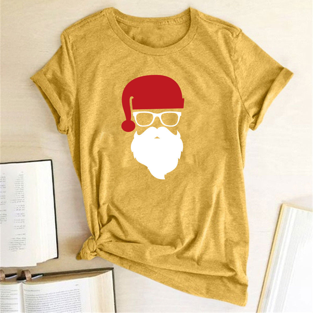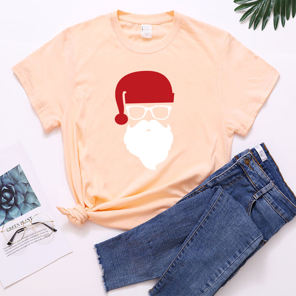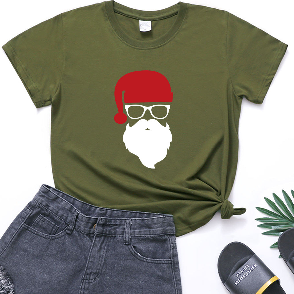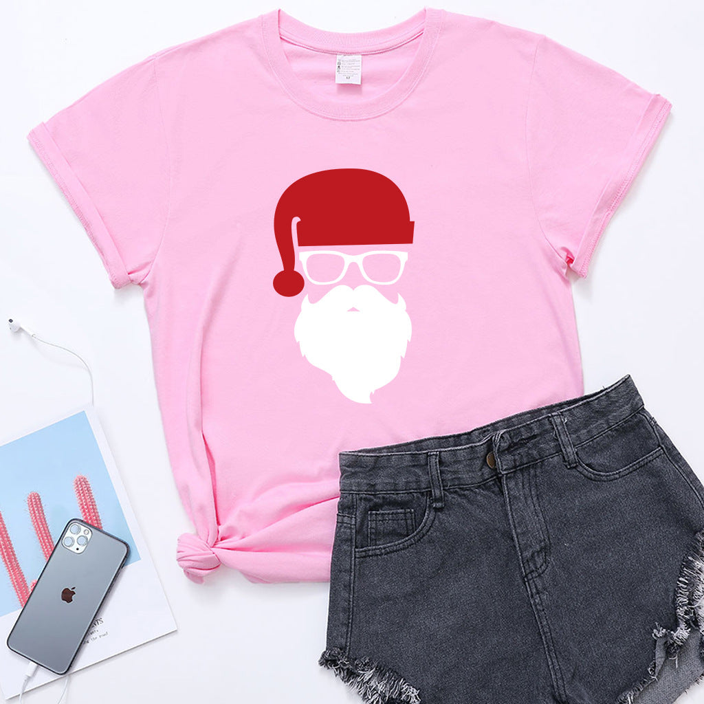 Christmas Glasses Christmas Old Man Head Printed T-shirt